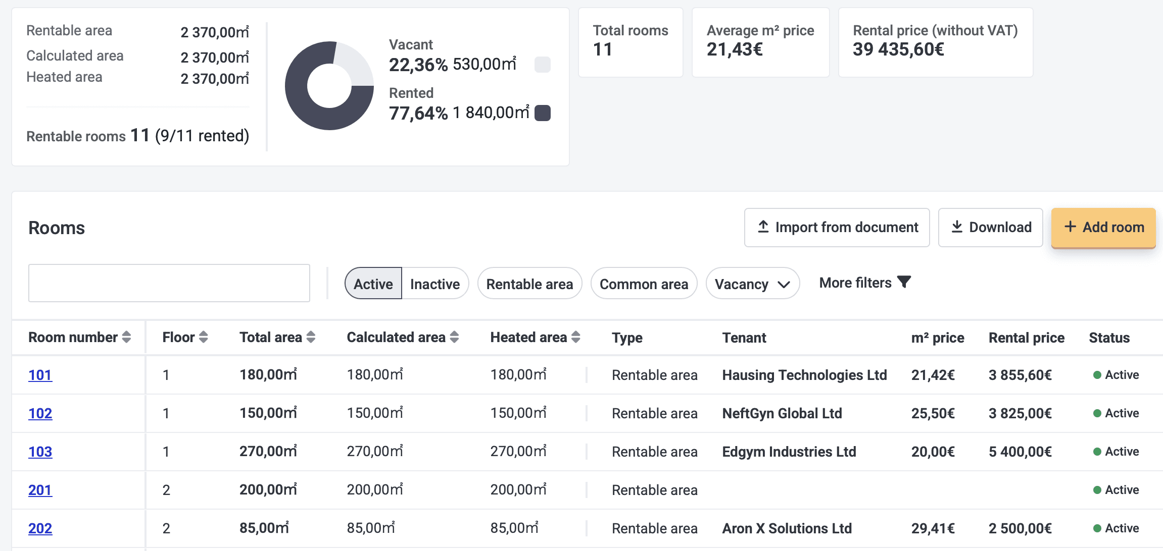 New rooms view – besides the new visual, there is vacancy column and filter, so you could get a quick and convenient overview of the object’s vacant rooms