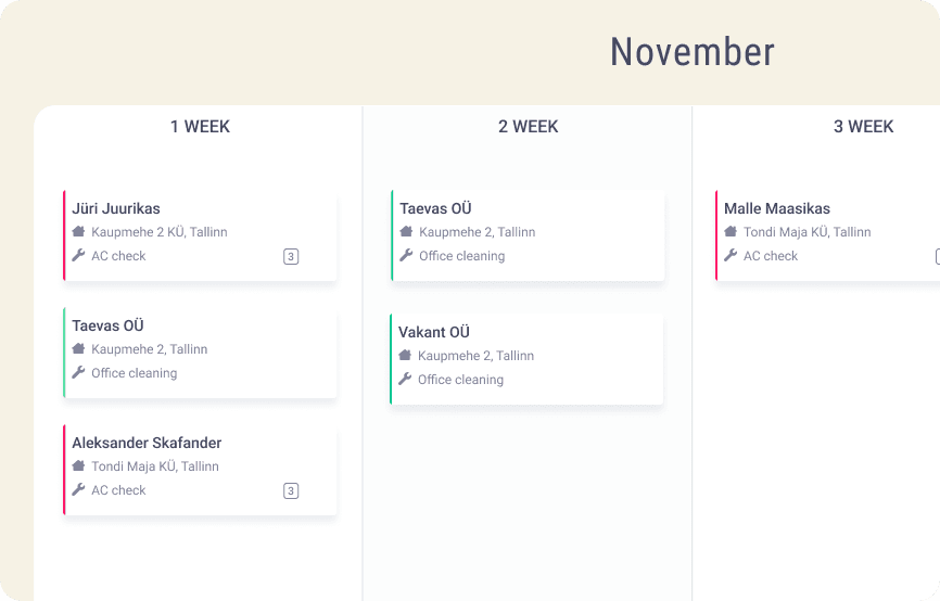 There are many devices linked to a building – boilers, ventilation devices, elevators, fire safety systems etc. All these devices need regular maintenance, so they can last longer. In Hausing you can determine device’s maintenance frequency and contractor, that needs to do the job. This way you don’t have to keep a calendar of upcoming maintenance works or call/write to contractors. Your only responsibility is to do primary set up and keep an eye on the automatically generated calendar, if the jobs are all done.