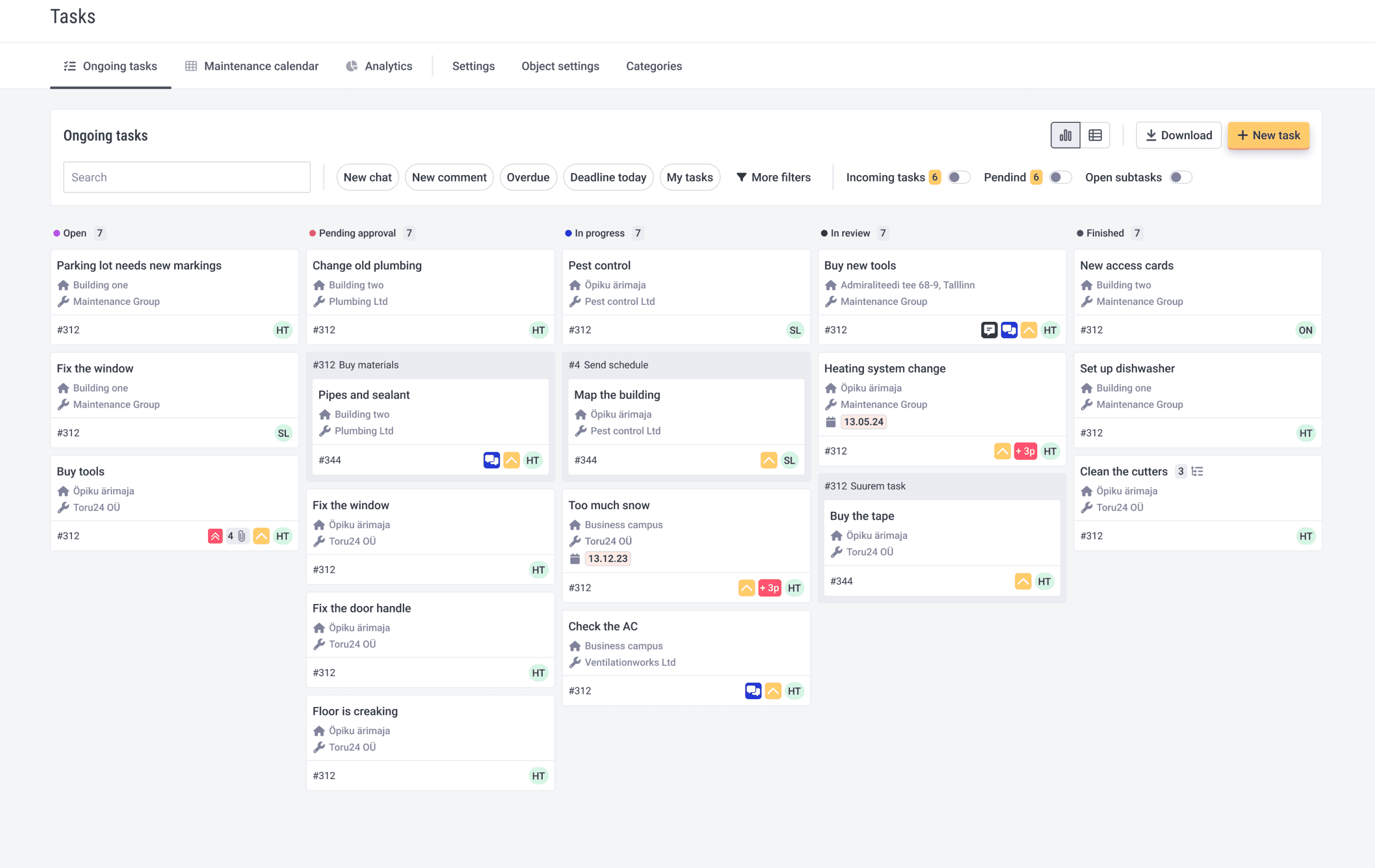 New ticketing view - in addition to new design, you can easily activate incoming or pending tasks column and open sub-tasks with one click. We added some new instant filters, to see which tasks have new comments or chats. Use the search bar to search tasks headlines and descriptions.
