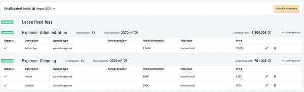 - Unallocated costs are shown first, and the system will notify you with an error message if something has been left unshared.