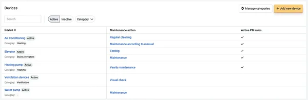 In addition, under an object’s devices submenu, you get a quick overview of which activities have entries in the maintenance diary.
